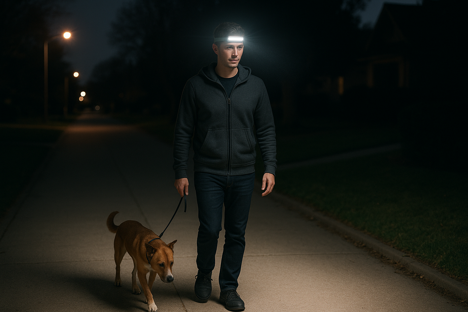 230° wide-beam FlareLoop LED Headlamp for walking, working, and everything after dark.